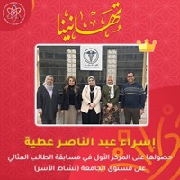 حازت بالمركز الأول في مسابقة الطالب المثالي على فئة الطالبات الطالبة: إسراء عبدالناصر عطية - الفرقة الثانية.