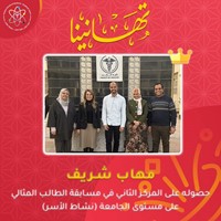 و حاز بالمركز الثاني على فئة الطلاب الطالب: مهاب شريف - الفرقة الخامسة.