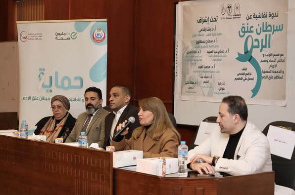 Under the supervision of Prof. Dr. Rasha Rafai, Dean of the Faculty, and Prof. Dr. Samah Bostawy, Acting Vice Dean for Education and Student Affairs, and organized by Prof. Dr. Hossam Abdel-Megid, Head of the Department of Obstetrics and Gynecology, and Prof. Dr. Nirvana Hussein, Head of the Department of Oncology, the Egyptian Cervical Cancer Screening Society, chaired by Dr. Mohamed El-Azab, with Vice President Dr. Diaa Abdel-Halim and Secretary-General Dr. Hala Adly, was invited to participate.