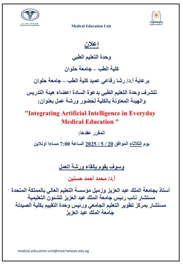 The Medical Education Unit invites all faculty members, and teaching assistants to attend this important event.
